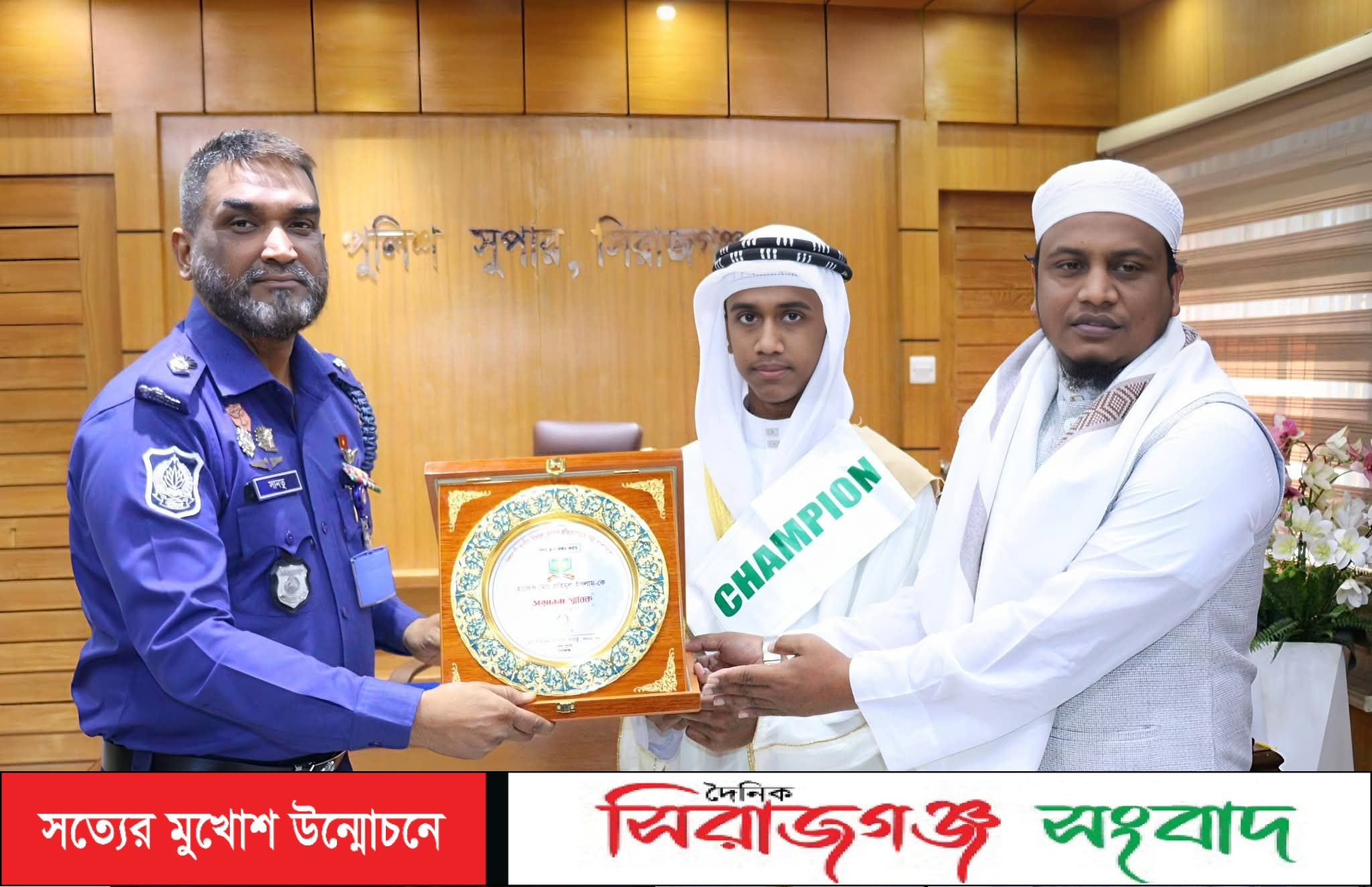 সিরাজগঞ্জে জাতীয় হিফজুল কুরআন প্রতিযোগিতায় প্রথম স্থান অর্জনকারী হাফেজ রাহিমুল ইসলামকে জেলা পুলিশ সুপার সাইফুল ইসলাম সানতু এর সংবর্ধনা প্রদান