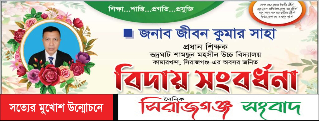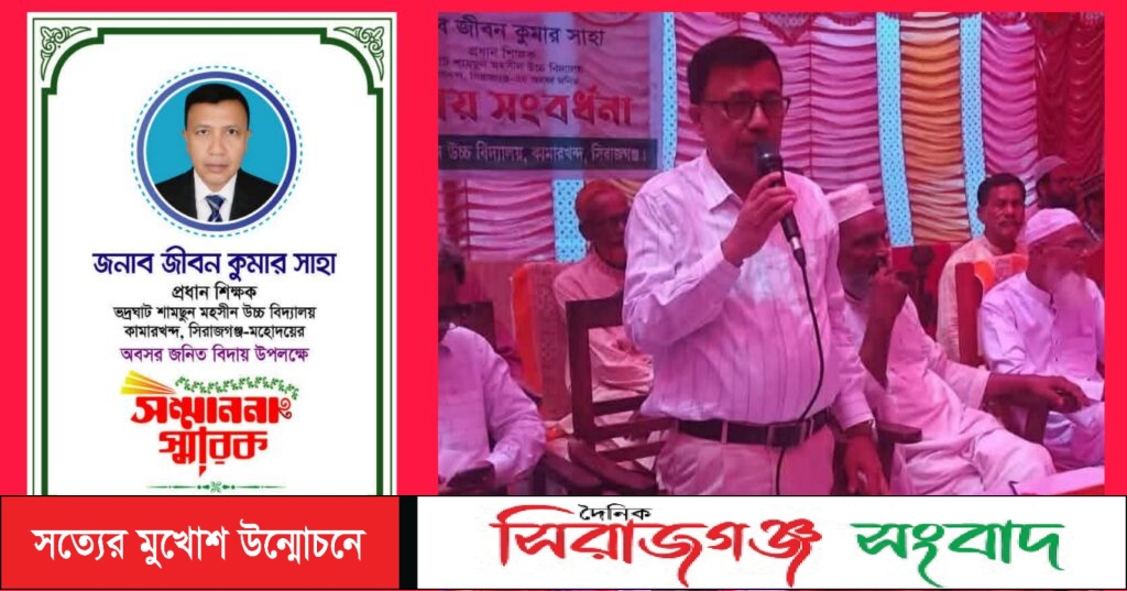 শিক্ষা শুধু পাঠ্যবইয়ের মধ্যে সীমাবদ্ধ নয় শিক্ষা হলো মানুষ গড়ার এক মহৎ সাধনা। আর সেই সাধনাতেই নিজের পুরো জীবন উৎসর্গ করে এক উজ্জ্বল দৃষ্টান্ত স্থাপন করেছেন কামারখন্দ উপজেলার ভদ্রঘাটে ইউনিয়নে অবস্থিত শামছুন মহসীন উচ্চ বিদ্যালয়ের প্রধান শিক্ষক জীবন কুমার সাহা। দীর্ঘদিনের নিষ্ঠা,সততা ও অক্লান্ত পরিশ্রমের পথচলার শেষে অবশেষে এল বিদায়ের সেই বেদনাবিধুর ক্ষণ।