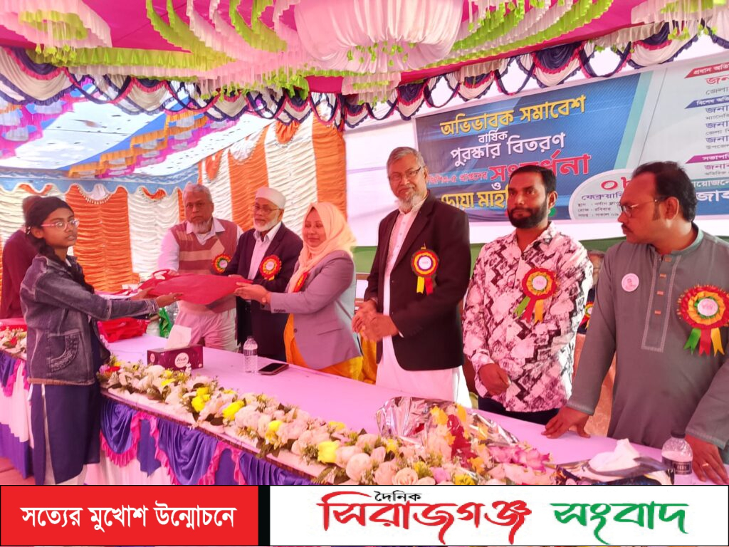 সংবর্ধনা এবং শিক্ষার্থীদের হাতে পুরস্কার তুলেদেন জেলা প্রশাসকের কার্যালয়ের অতিরিক্ত জেলা প্রশাসক ( রাজস্ব) অত্র বিদ্যালয় ম্যানেজিং কমিটির সভাপতি মোছাঃ নুর নাহার বেগম।