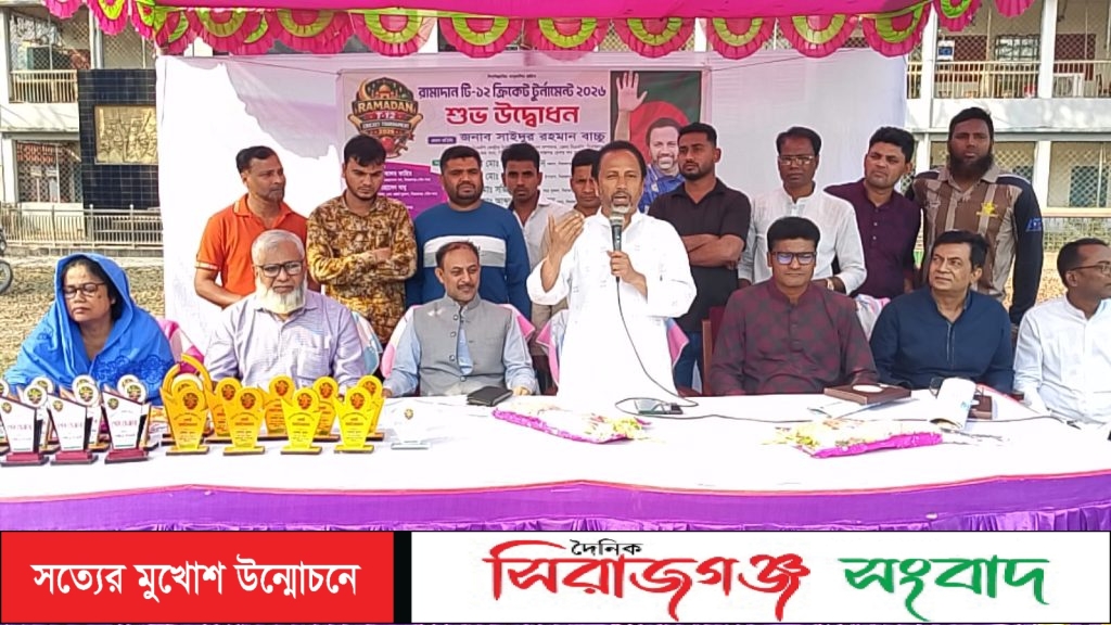 খেলাধুলার মাধ্যমে শারীরিক সুস্থতা এবং মানসিক চাপ কমানো সম্ভব, তাই নিয়মিত খেলাধুলার অভ্যাস করুন এই প্রতিপাদ্যে বিন্দুপাড়া যুবসমাজ, সিরাজগঞ্জের আয়োজনে রমাদান টি-১২ ক্রিকেট টুর্নামেন্ট ২০২৬ উদ্বোধন অনুষ্ঠিত হয়েছে।