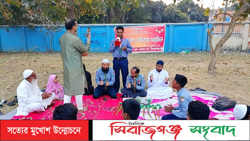 রবিবার ( ২২ ফেব্রুয়ারী২০২৬) বিকেলের দিকে সিরাজগঞ্জ পৌর শহরের পুরাতন জেলখানা ঘাটে যমুনা নদীর তীঁরে যমুনা বিলাসের সন্মুখে খাসের সবুজ চত্বরে হিলফুল ফুযুল মুক্ত রোভার দলের আয়োজনে অনুষ্ঠান শুরুতে পবিত্র কোরআন থেকে তেলোয়াতের মধ্যেদিয়ে রোভার স্কাউট