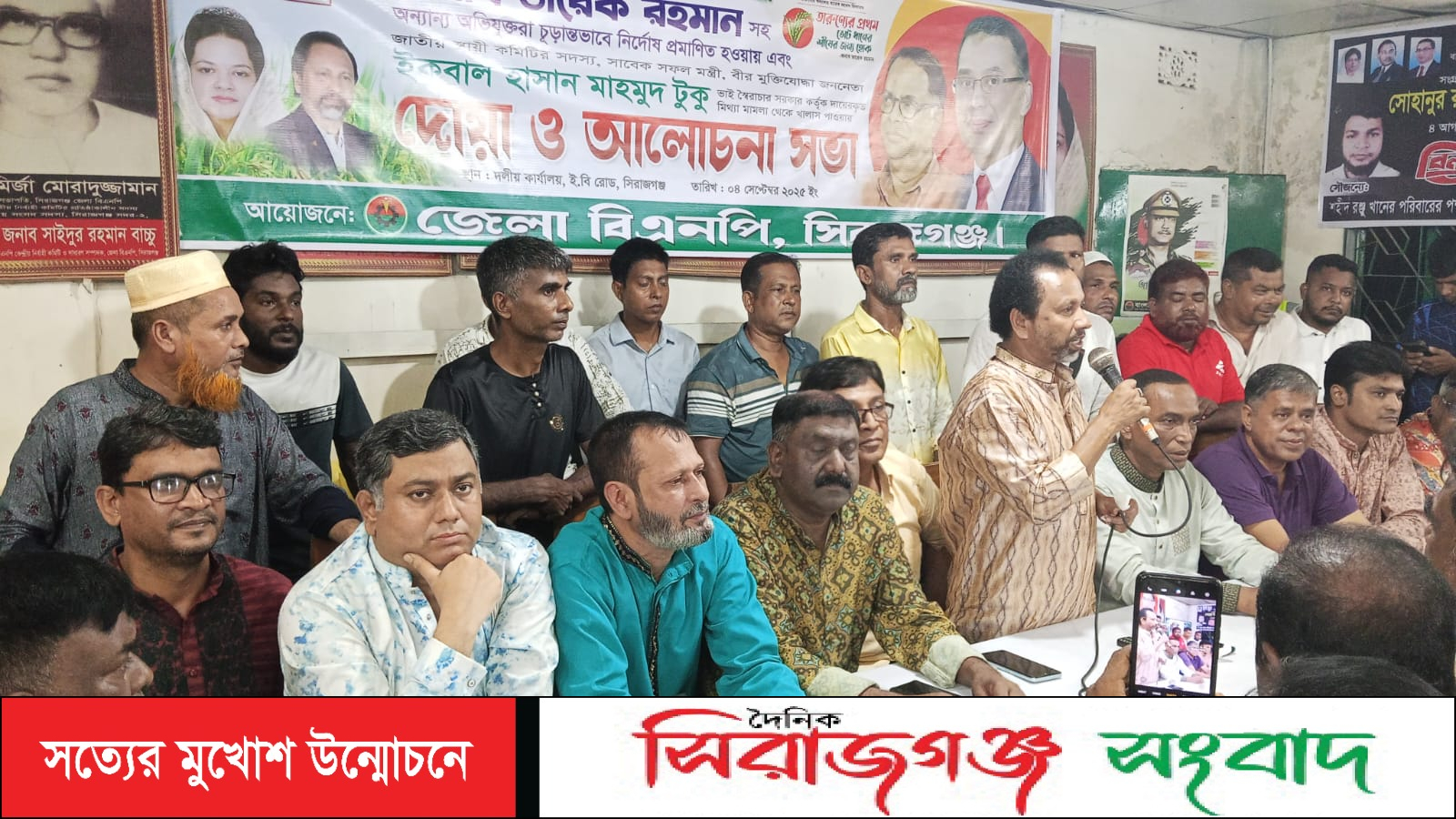 তারেক রহমান ও ইকবাল হাসান মাহমুদ টুকু মিথ্যা মামলায় খালাস পাওয়ায় সিরাজগঞ্জে আলোচনা সভা ও শোকরানা দোয়া মাহফিল অনুষ্ঠিত