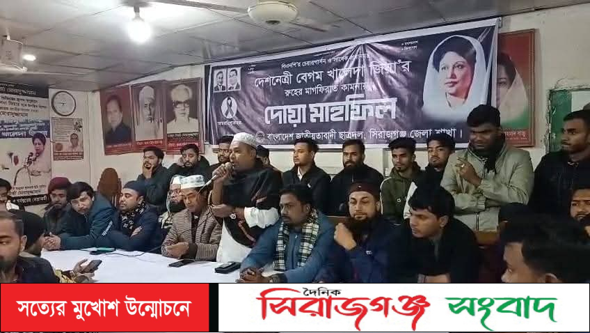 সিরাজগঞ্জ জেলা ছাত্রদলের আয়োজনে দেশনেত্রী বেগম খালেদা জিয়ার রুহের মাগফিরাত কামনায় দোয়া মাহফিল অনুষ্ঠিত