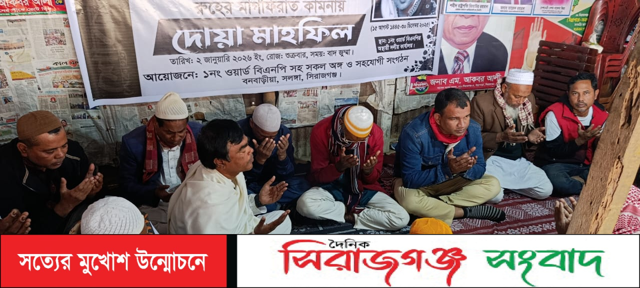 আপোষহীন নেত্রী বেগম খালেদা জিয়ার রুহের মাগফেরাত কামনায় সিরাজগঞ্জে মির্জা মোস্তফা জামানের আয়োজনে দোয়া মাহফিল অনুষ্ঠিত