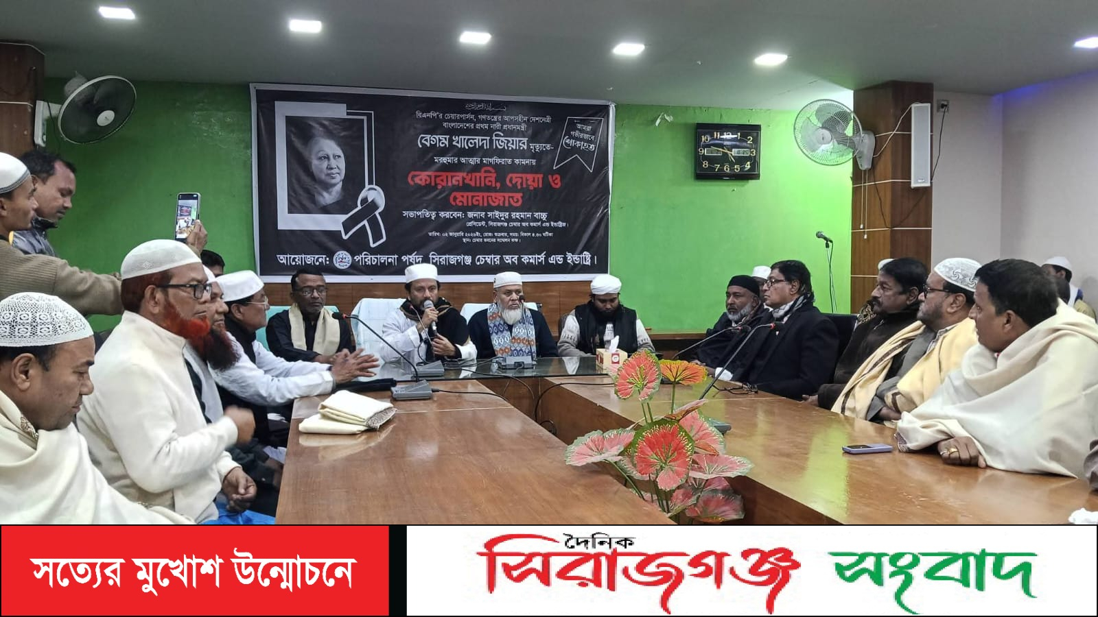 সিরাজগঞ্জ চেম্বার অব কমার্স এন্ড ইন্ডাস্ট্রির পরিচালক পর্ষদের উদ্যোগে বেগম খালেদা জিয়ার রুহের মাগফিরাত কামনায় দোয়া মাহফিল অনুষ্ঠিত