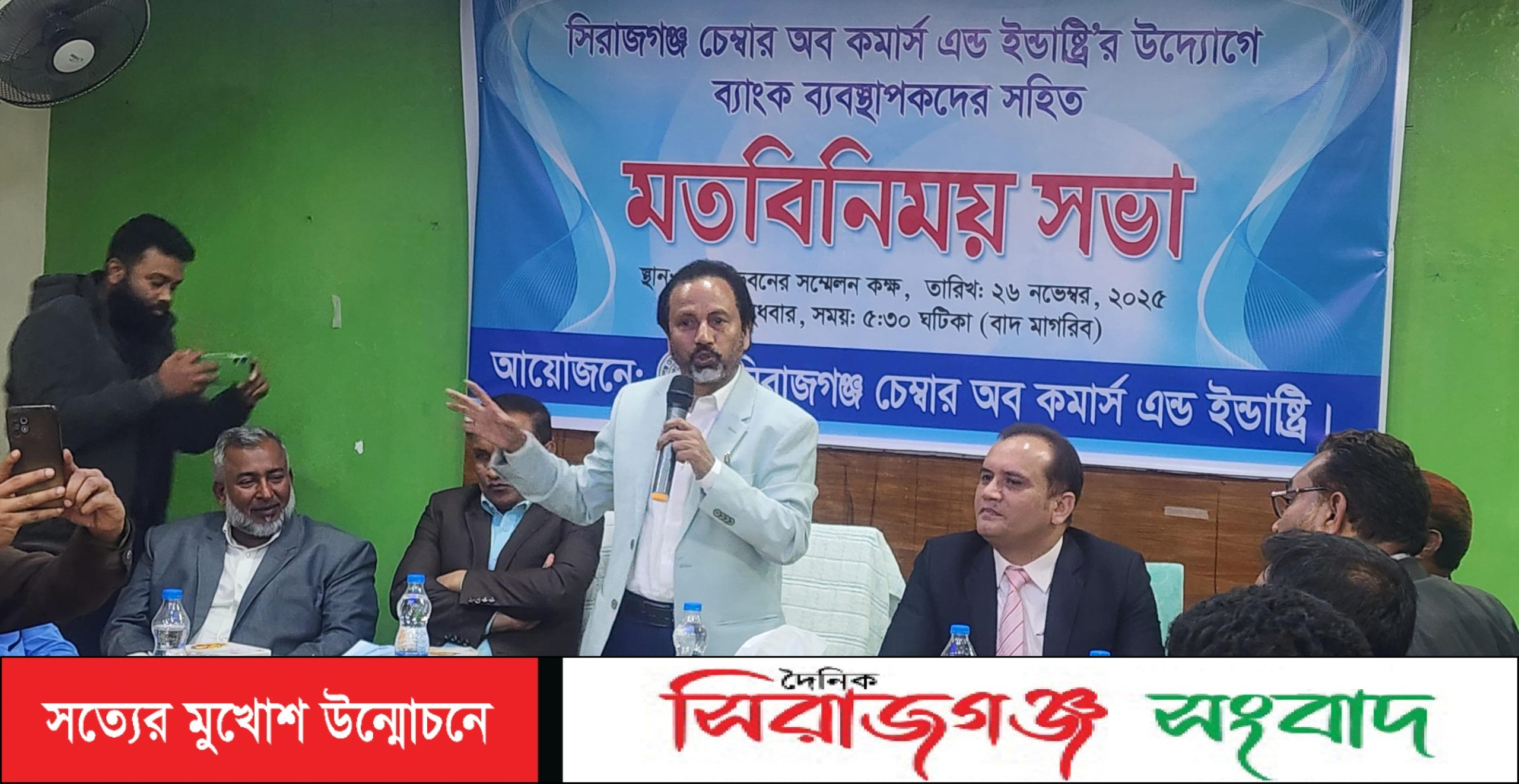 শিল্প উদ্যোক্তা ও ব্যবসায়ীদের জন্য ব্যাংকিং সেবা বৃদ্ধিতে করণীয় নিয়ে ব্যাংক ব্যবস্থাপকদের সঙ্গে সিরাজগঞ্জ চেম্বার নেতৃবৃন্দের মতবিনিময়