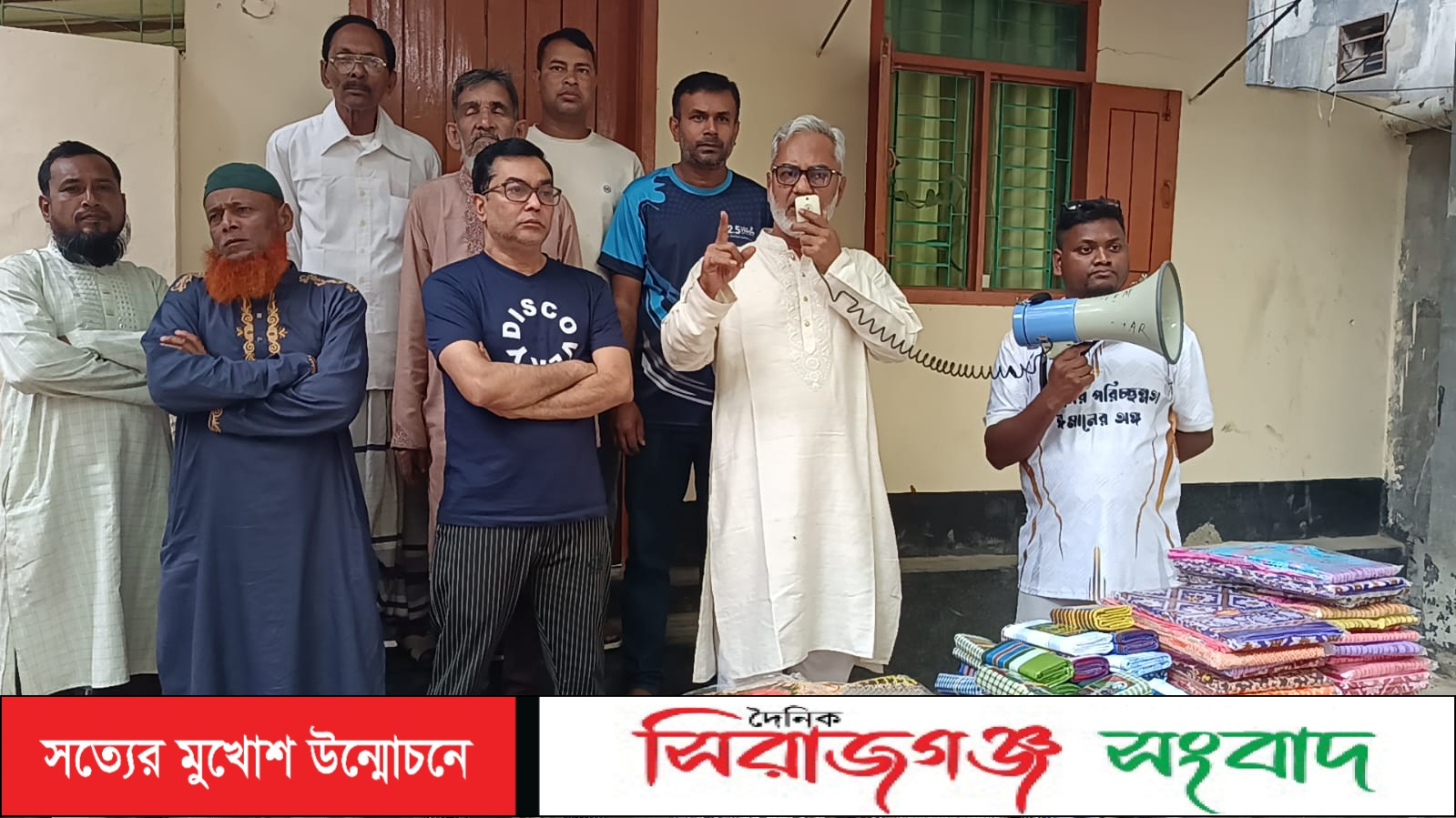 সিরাজগঞ্জে শতাধিক দরিদ্র ও অসহায় মানুষকে শাড়ী- লুঙ্গী উপহার দিলেন- বিএনপি নেতা মির্জা মোস্তফা জামান