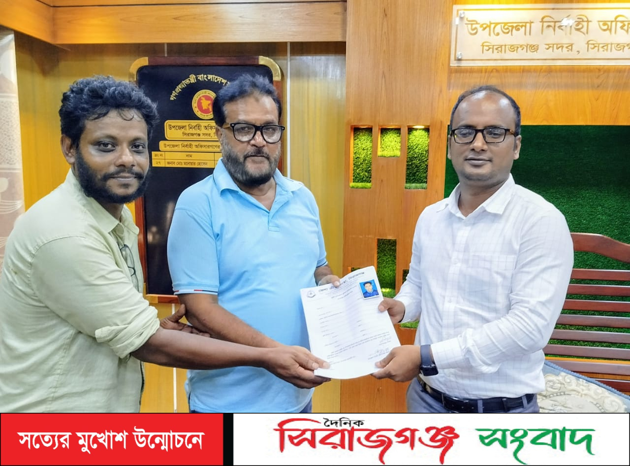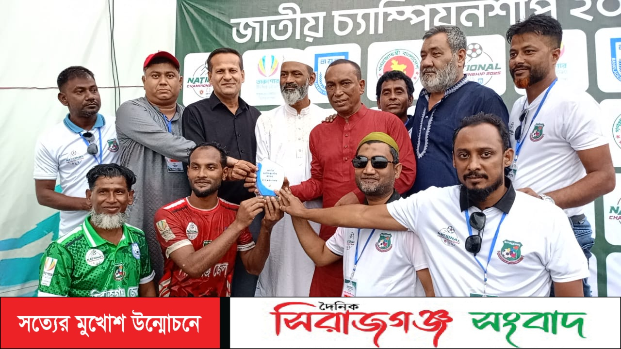 সিরাজগঞ্জে ডিসিকাপ ফুটবল টুর্নামেন্টে সদর উপজেলা দলের খেলোয়াড়দের সাক্ষরিত রেজিষ্ট্রেশন ফরম হস্তান্তর