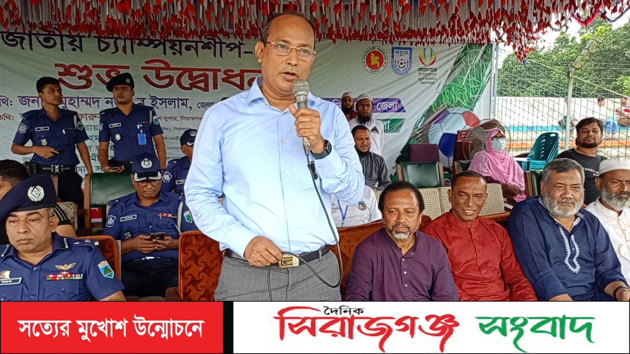 তারুণ্যের উৎসব সিরাজগঞ্জ ডিসি গোল্ডকাপ ফুটবল টুর্নামেন্টের উদ্বোধনী খেলায় সদর উপজেলার বিপক্ষে সদর পৌরসভা ১-০ গোলে বিজয়ী