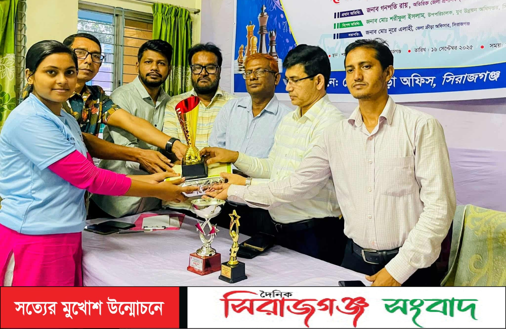 সিরাজগঞ্জ জেলা ক্রীড়া অফিসের উদ্যোগে দিনব্যাপী অনূর্ধ্ব-১৬ বালক-বালিকা দাবা প্রতিযাগিতা ও পুরস্কার বিতরণ