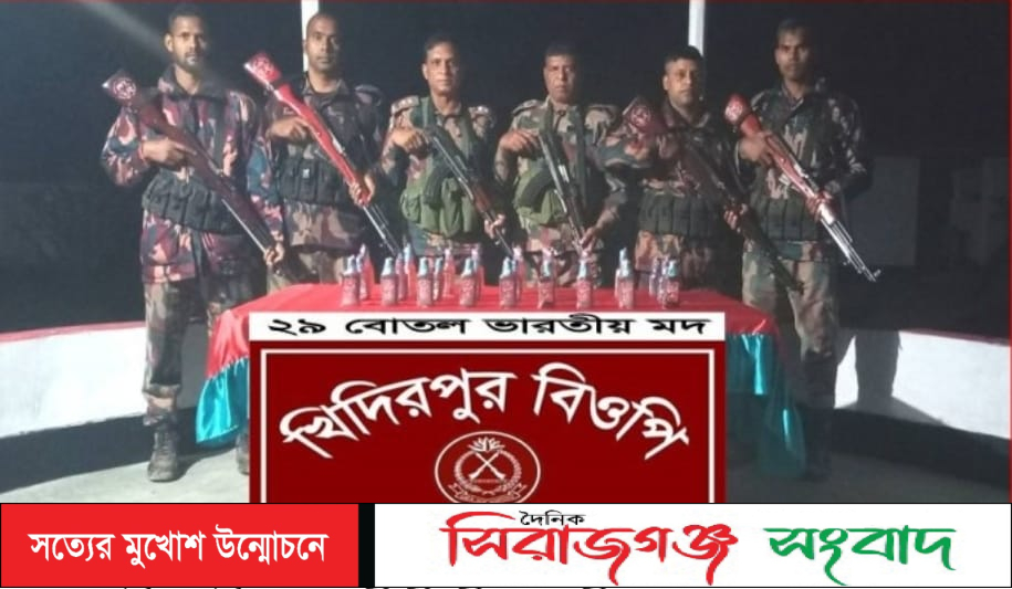 রাজশাহীর সীমান্তে বিজিবি’র অভিযান,২৯ বতল ভারতীয় মদ আটক