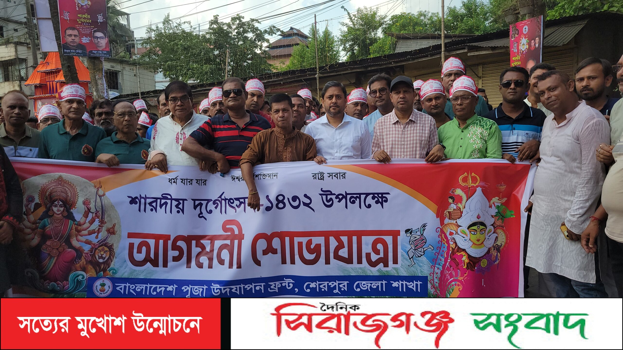 শেরপুরে শারদীয় দুর্গোৎসব উপলক্ষ্যে বর্ণাঢ্য আগমনী শোভাযাত্রা অনুষ্ঠিত