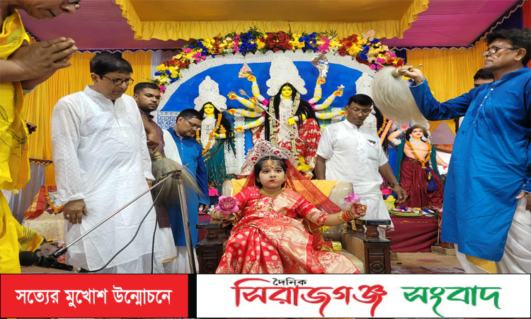 বগুড়ায় শারদীয় দুর্গোৎসবের মহাঅষ্টমীতে কুমারী পূজা অনুষ্ঠিত