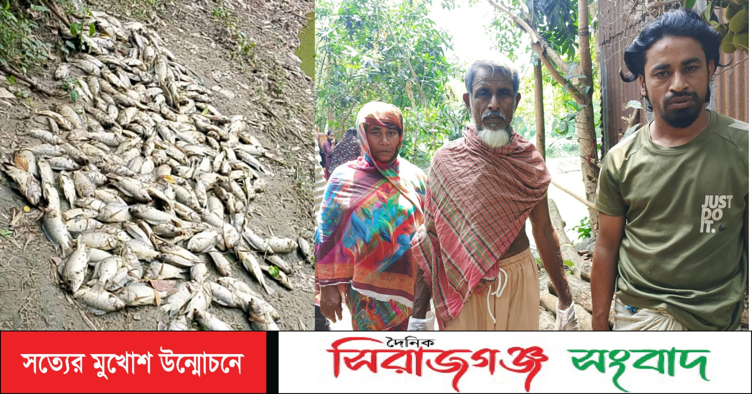 কামারখন্দে প্রতিবেশীর ময়লা আবর্জনায় পানি বিষাক্ত হয়ে মরে ভেসে উঠল দুই লক্ষাধিক টাকার মাছ