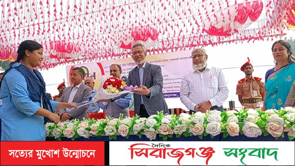 রবিবার (২৩ নভেম্বর ২০২৫) সকাল ১০ টায় স সিরাজগঞ্জ সরকারি কলেজে মাঠ প্রাঙ্গণে একাদশ শ্রেণির এ নবীণবরণ অনুষ্ঠানের সভাপতিত্ব করেন, সিরাজগঞ্জ সরকারি কলেজে’র অধ্যক্ষ প্রফেসর মোঃ মহীদুল হাসান।