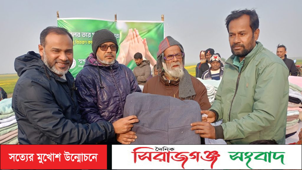 সিরাজগঞ্জে সুক পাখি সংগঠন এর উদ্যোগে আড়াই শতাধিক শীতার্তদের মাঝে কম্বল বিতরণ