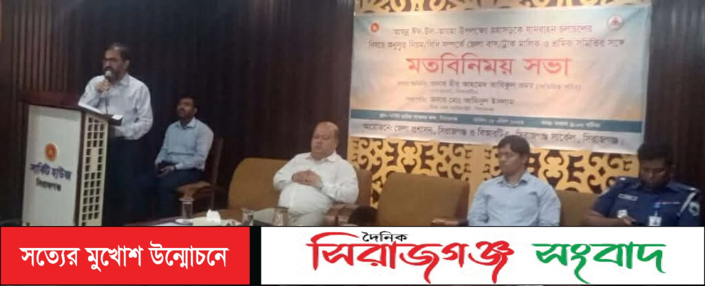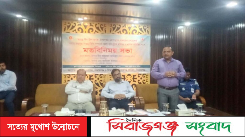 আসন্ন ঈদুল আযহা উপলক্ষে মহাসড়কে যানবাহন চলাচল নিরাপদ ও শৃঙ্খলাবদ্ধ রাখতে সিরাজগঞ্জে জেলা প্রশাসন ও বিআরটিএ’র উদ্যোগে এক গুরুত্বপূর্ণ মতবিনিময় সভা অনুষ্ঠিত হয়েছে।